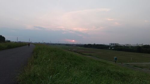 夕方、荒川の土手に夕日を見に行きました。あー陽が沈む~何とか間に合った!(ぎりぎりセーフ…) 今日の東京は35度まで気温が上がりました。 暑い…暑すぎる…溶ける…。 今日は在宅勤務だったのですが、事務所の人に 「暑すぎて溶ける…身体が部屋にへばりつ…